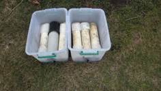 But if the water holding capacity is an issue, for example if the boxes are going to be left for some time between watering then it is easy to increase the water holding capacity by laying pipes or some other container such as an old water bottle, in the base of the box.  These pipes do not contain any stones or soil so 100% of the space is available for water storage, much more efficient than using the pore space between stones as water storage.